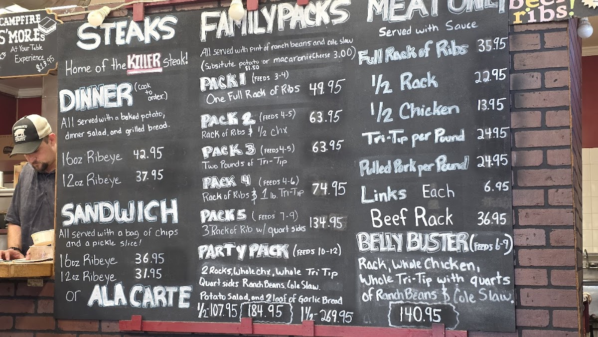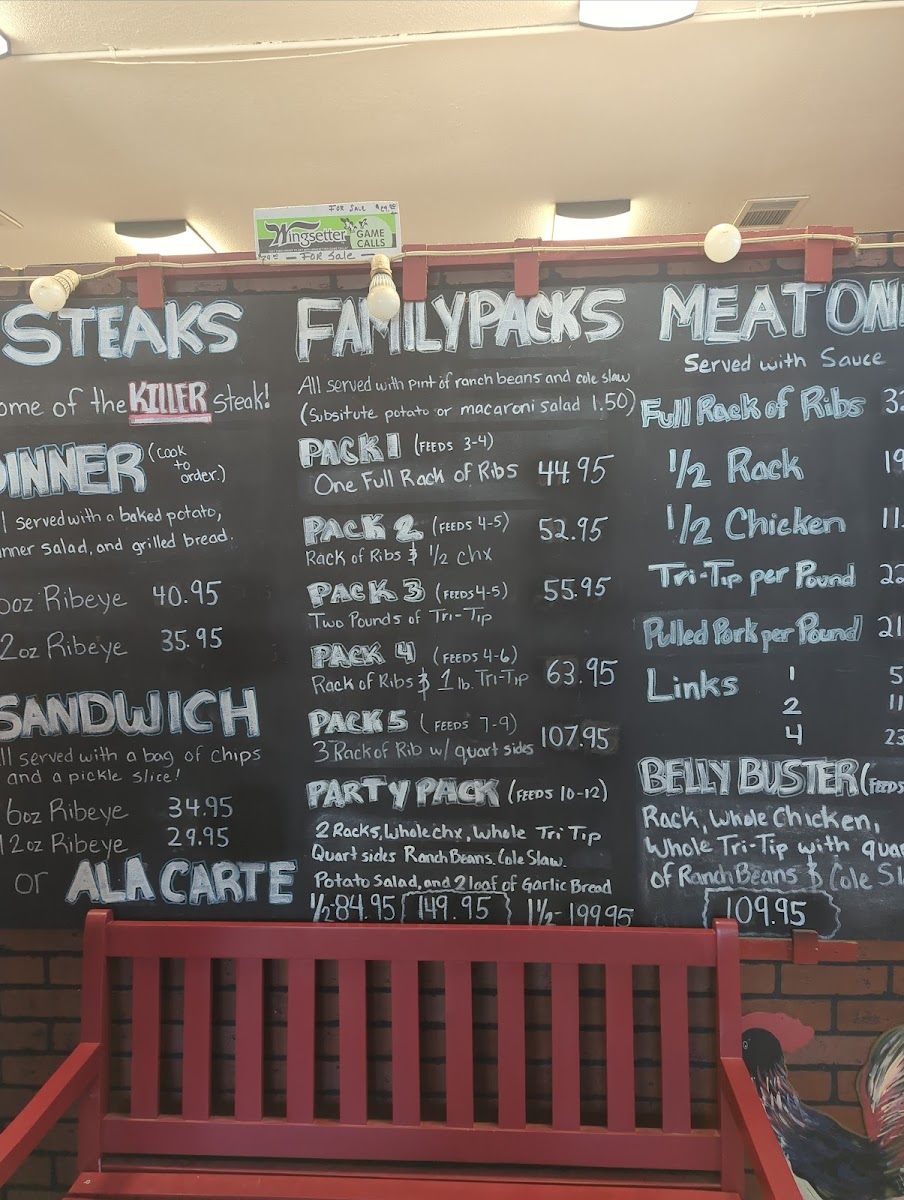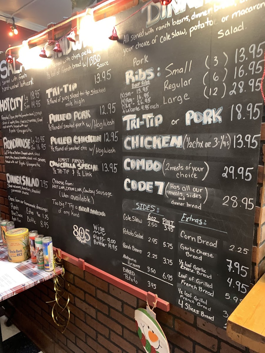 Barbecue Dinners provide portioned rib meals in small, regular, and large sizes, each served with ranch beans, a choice of potato salad or cole slaw, and grilled dinner bread. There is also the option to upgrade side dishes to macaroni and cheese.