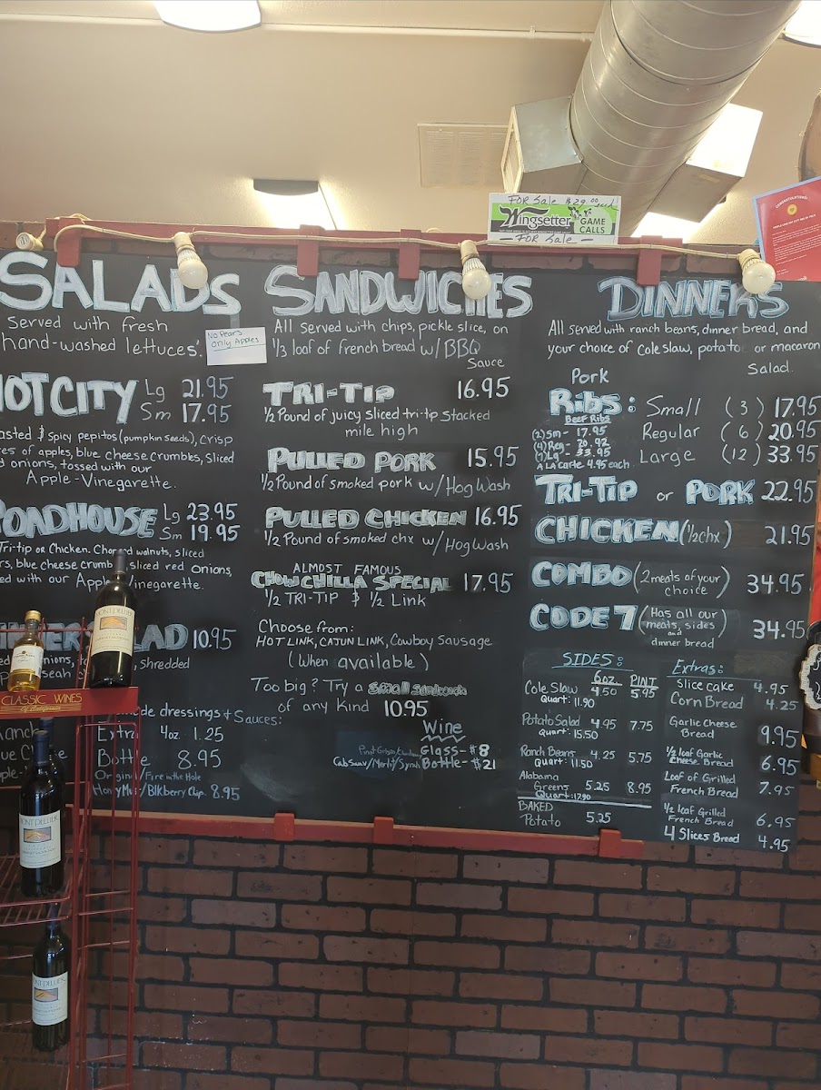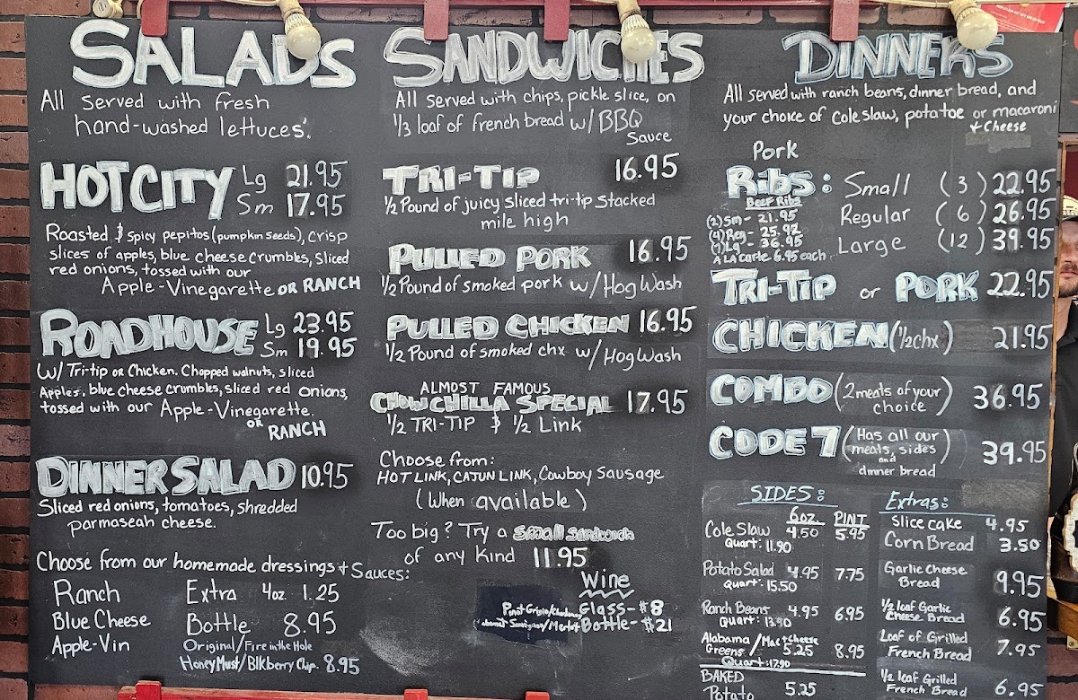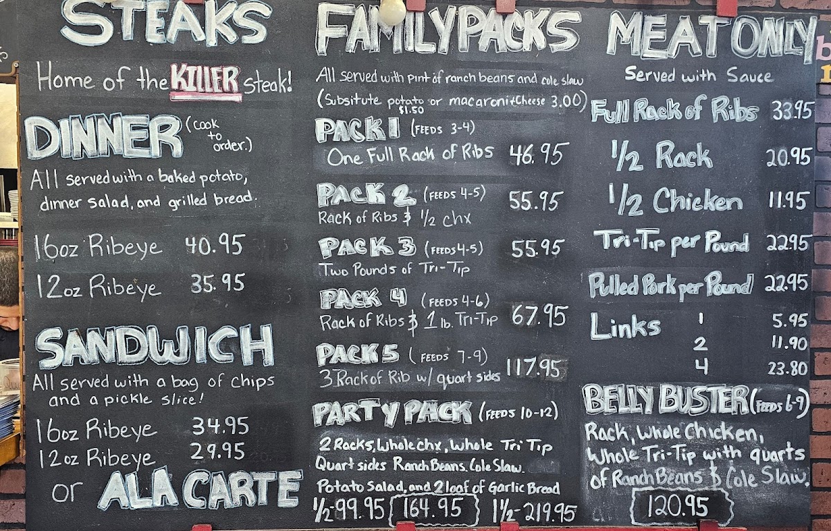 This menu is suitable for casual dining occasions where guests can choose quick-serve sandwiches or more complete dinners that offer a full barbecue meal experience. The variety of portion sizes and sides accommodates different appetites and preferences.